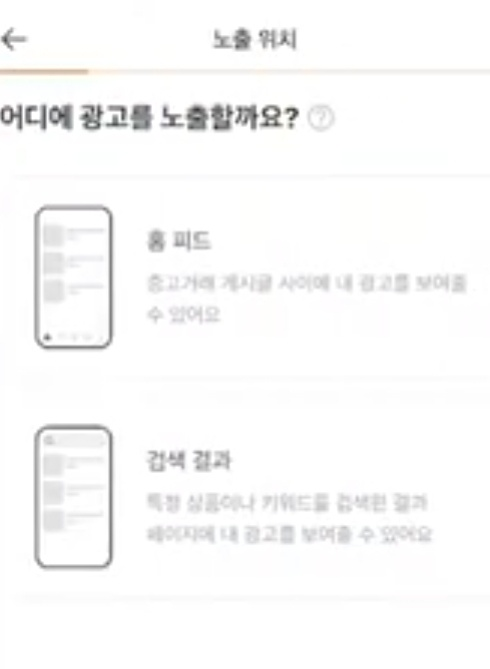 홈피드 광고는 말 그대로 중고거래 게시 글 사이에 광고가 보여 지는 것을 말한다고 합니다. 광고의 소재 즉 광고를 클릭 했을 때 어디로 이동하는지에 따라서 비즈 프로필 홈이나 소식, 동네 홍보 글 중에서 선택 할 수 있다고 합니다.