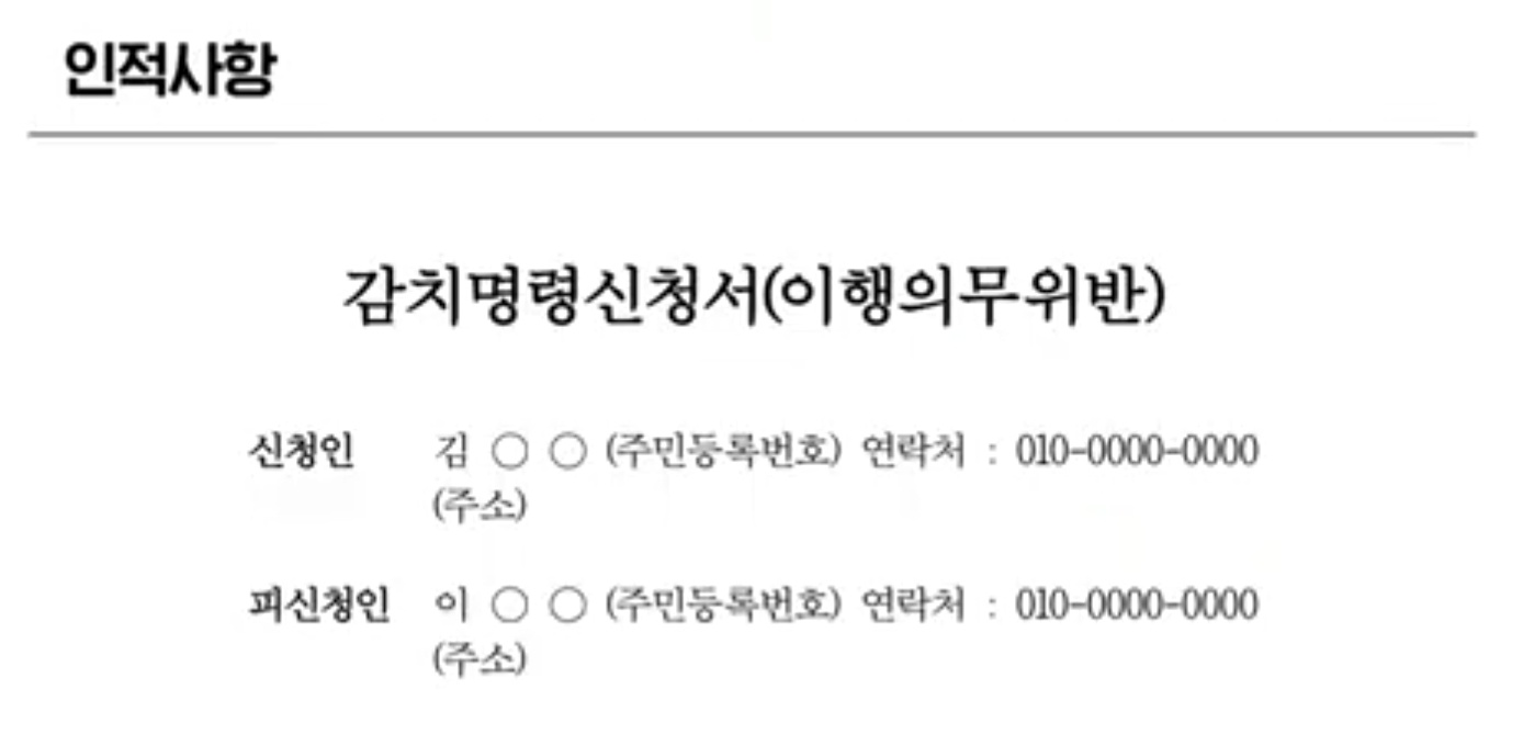 인적사항에는 신청인과 피신청인의 인적사항을 기재하면 된다고 합니다.